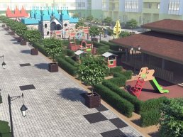 Так, дворовая территория превратится в «Английский парк» и будет поделена на две части. Первая часть – это небольшой детсад, рассчитанный на пятьдесят малышей, с игровыми площадками. В качестве ограждений здесь будут использованы кустарники и габионы.